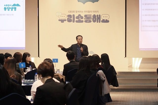 이문구 동양생명 대표는 지난 7일 대전 KW 컨벤션에서 직원들과 '소통 간담회'를 진행했다. /동양생명
