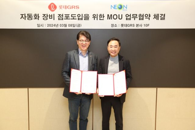 롯데GRS는 반도체 장비 제조 기업 네온테크와 자동화 설비 제작 기술을 바탕으로 개발한 F&B 자동화 튀김기 '보글봇' 적용을 위한 MOU를 체결했다고 8일 밝혔다.
