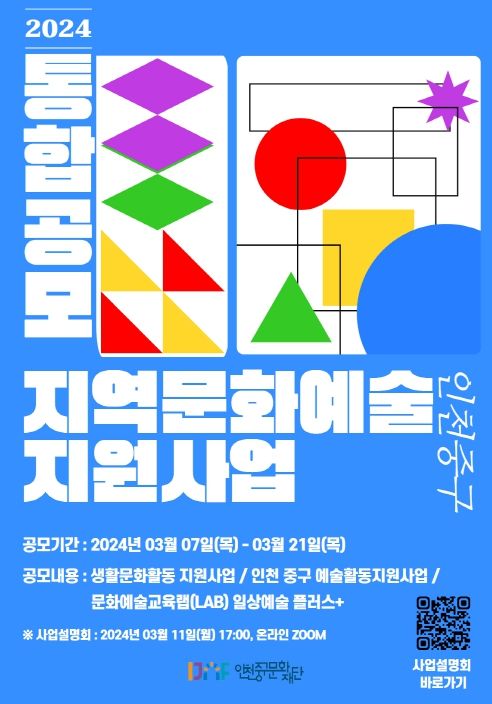 | ▲ (재)인천중구문화재단, 2024 인천 중구 지역문화예술 지원사업 통합공모 |