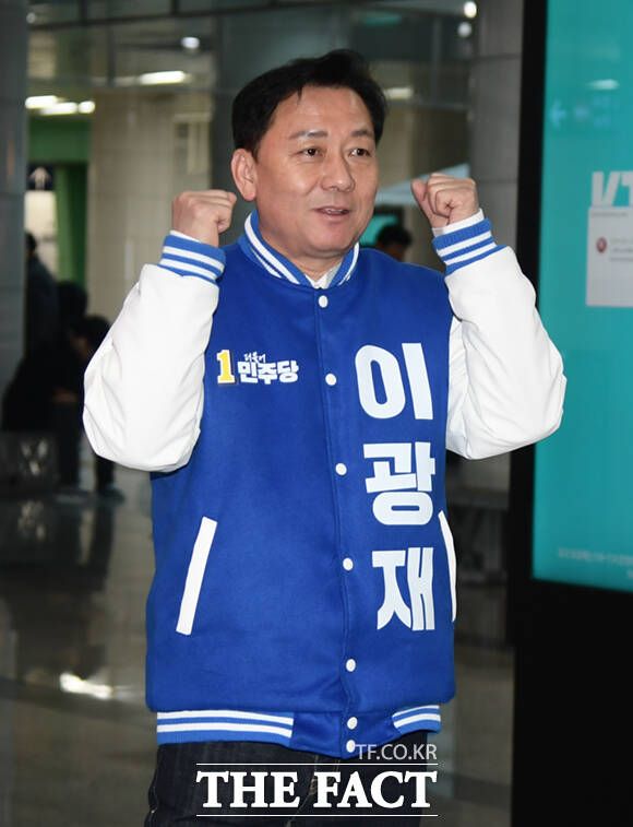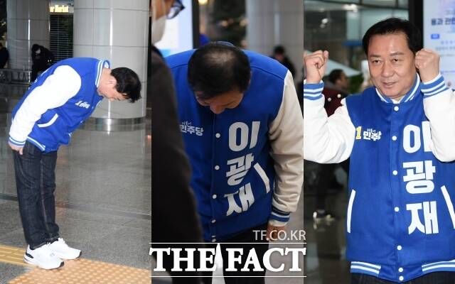 이광재 더불어민주당 후보는 '실력은 이광재'라는 글귀가 적힌 파란색 야구점퍼와 청바지, 운동화 차림으로 판교역을 찾아 출근하는 시민들을 향해 일일이 허리를 숙였다. 때로는 하이파이브와 "파이팅"을 외치며 출근길 시민들을 격려했다.