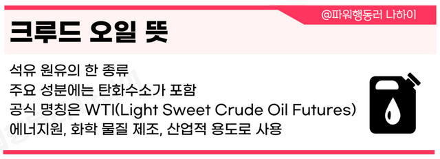 공식 명칭은WTI(Light Sweet Crude Oil Futures)로, 미국 서부 텍사스산 원유라고 합니다.