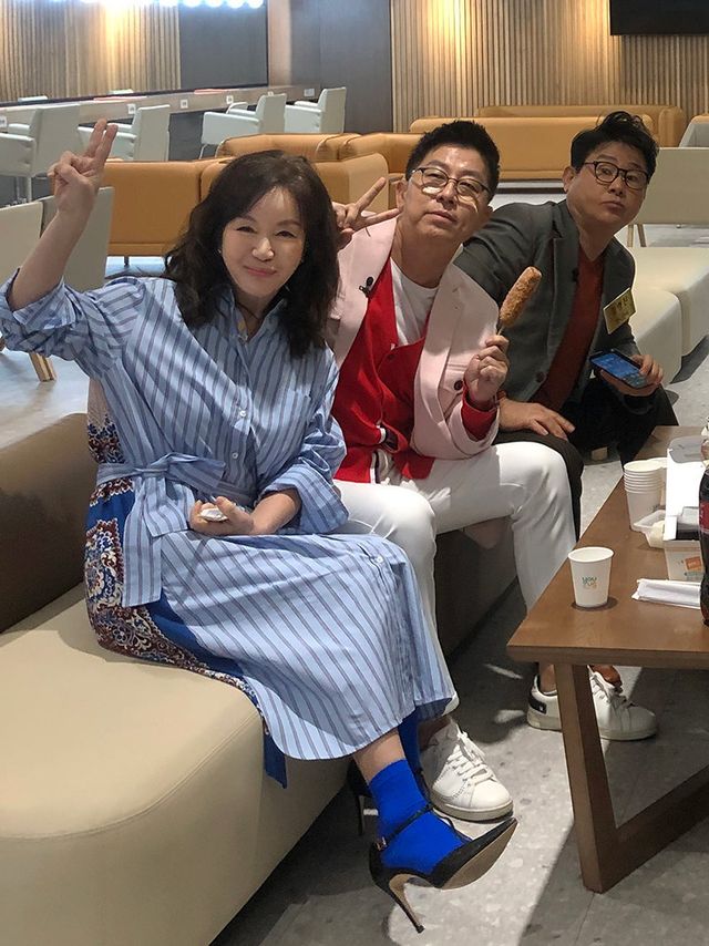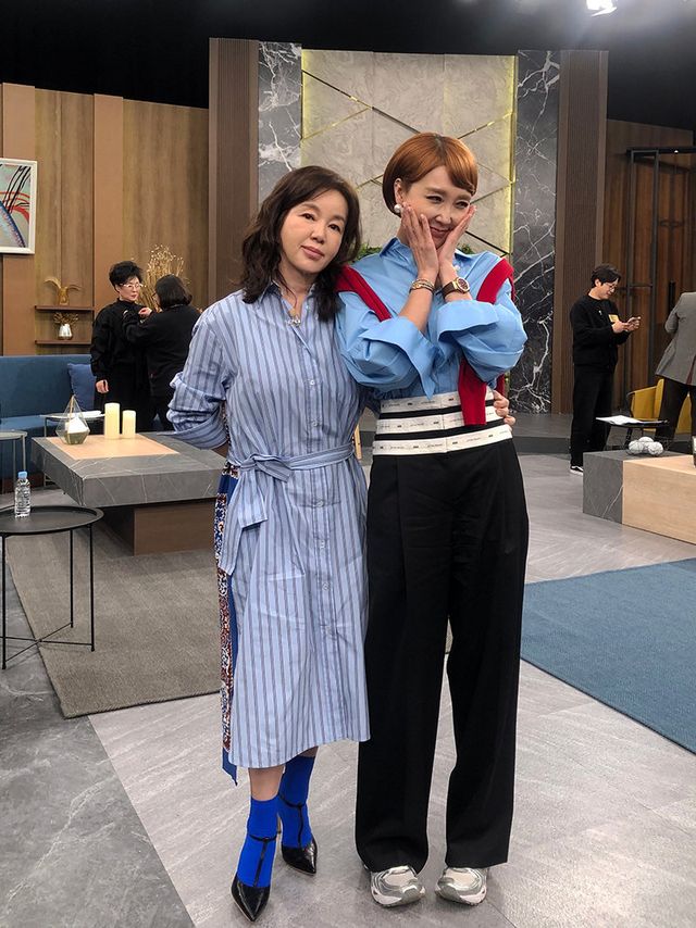 임예진의 소속사 심스토리(주) 측은 9일 MBN ‘속풀이쇼 동치미’ 녹화 중 출연자들과 함께 찍은 사진을 공개했다. 임예진은 하늘색 스트라이프 셔츠원피스를 입고, 상큼한 미소로 눈길을 끌었다.