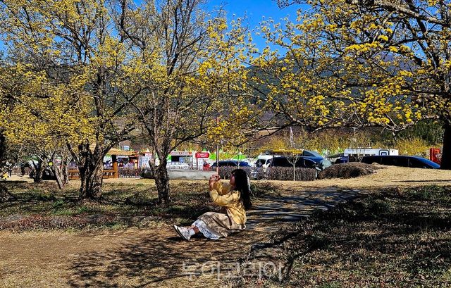[투어코리아=유경훈 기자] 국내 최대 산수유 군락지인 전남 구례 산동면에서 '영원한 사랑을 찾아서’란 주제로 구례산수유축제가 오늘(9일) 개막해 여성관광객들이 산수유꽃을 배경으로 추억이 될 사진을 찍고 있다.