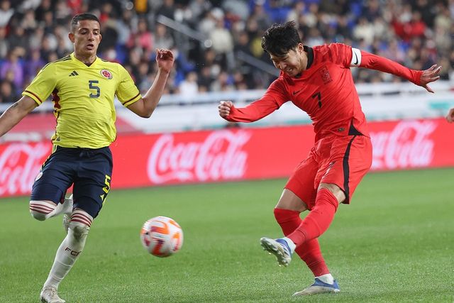 지난해 3월 24일 오후 울산 문수축구경기장에서 열린 대한민국 대 콜롬비아 축구 대표팀의 평가전에서 손흥민이 슛을 시도하고 있다. / 연합뉴스