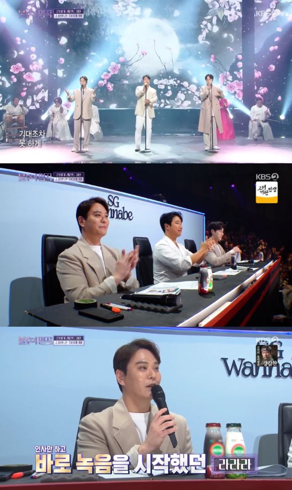 이어 이날 경연에 참가한 보컬들이 SG워너비의 명곡들을 재해석했다. '여자 SG워너비'라 불리던 씨야 출신 이보람과 '미스터트롯2' 우승자 출신 안성훈이 '죄와 벌', 국악인 유태평양과 김준수는 '살다가', 그룹 브로맨스는 '내사람', 크래비티 정모, 우빈, 민희는 '라라라', 리베란테는 '타임리스(Timeless)'를 각각 불렀다.