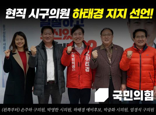 하태경 의원은 이날 사회관계망서비스(SNS)에 손주하 중구의회 의원, 엄경석 성동구의회 구의원, 박영한·박중화 서울시의회 의원과 찍은 사진과 함께 ‘우리 국민의힘 시·구의원들은 하태경 의원을 지지합니다’라는 글을 게재했다. 이들은 “하태경(의원)은 민주당을 확실히 이길 필승카드”라면서 “보수와 중도, 청년층으로부터 골고루 지지를 받는 하태경이어야 민주당에게 승리할 수 있다”고 주장했다. 이어 “(하 의원이)당의 수도권 승리를 위해 자기를 헌신했듯이 중구와 성동구 주민들을 위해 헌신할 것”이라면서 “지역 주민들을 하나로 통합할 수 있는 적임자”라고 강조했다.