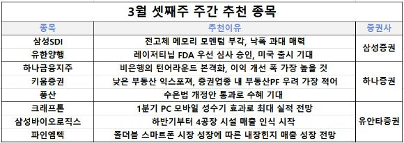 삼성SDI에 대해 삼성증권은 "전고체 메모리 모멘텀이 부각된다"며 "낙폭 과대 매력도 높다"고 봤다. 유한양행에 대해선 "레이저티닙 미국 식품의약국(FDA) 우선 심사 승인에 따른 미국 출시가 기대된다"고 설명했다.