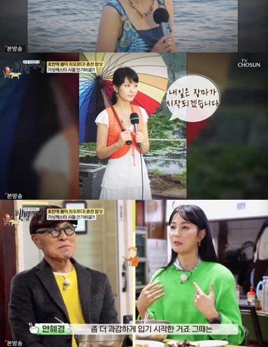 안혜경은 "2001년도에 MBC에 입사했다. 뉴스 안에서 기상캐스터가 정장 입고 단발머리로 나오는 게 싫었다"라고 말했다.