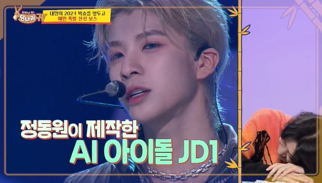 정동원은 "내가 제작한 아이돌 'JD1'이 있다"라며 AI신인 아이돌을 콘셉트 삼은 부캐릭터 활동을 언급했다.