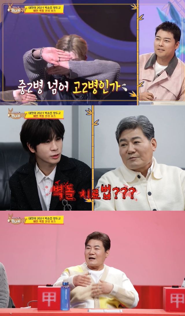 JD1의 자료화면이 이어지자 스튜디오의 김희철은 "중2병 아직 안 나았잖아"라며 폭소했다.