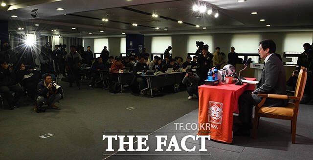 [더팩트ㅣ이동률 기자] 황선홍 대한민국 축구대표팀 임시 감독이 11일 오전 서울 종로구 대한축구협회 축구회관에서 3월 A매치 소집명단을 발표하고 있다.