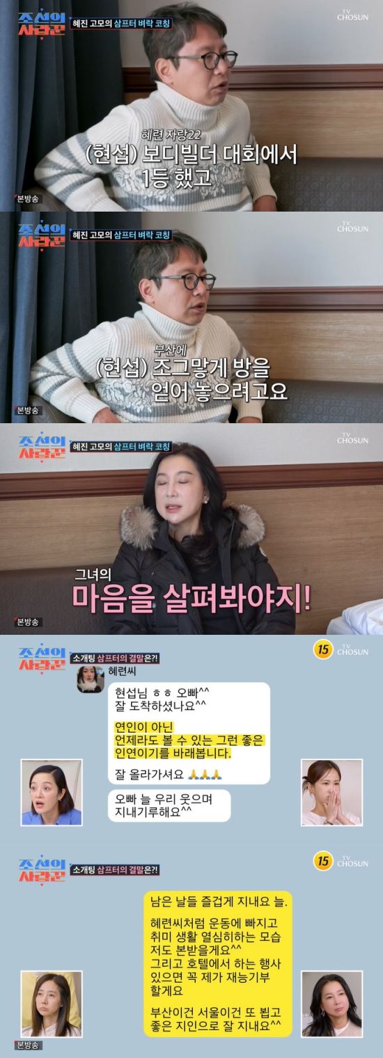 11일 방송된 TV조선 '조선의 사랑꾼'에서는 심혜진이 심현섭의 소개팅을 응원하는 장면이 전파를 탔다.