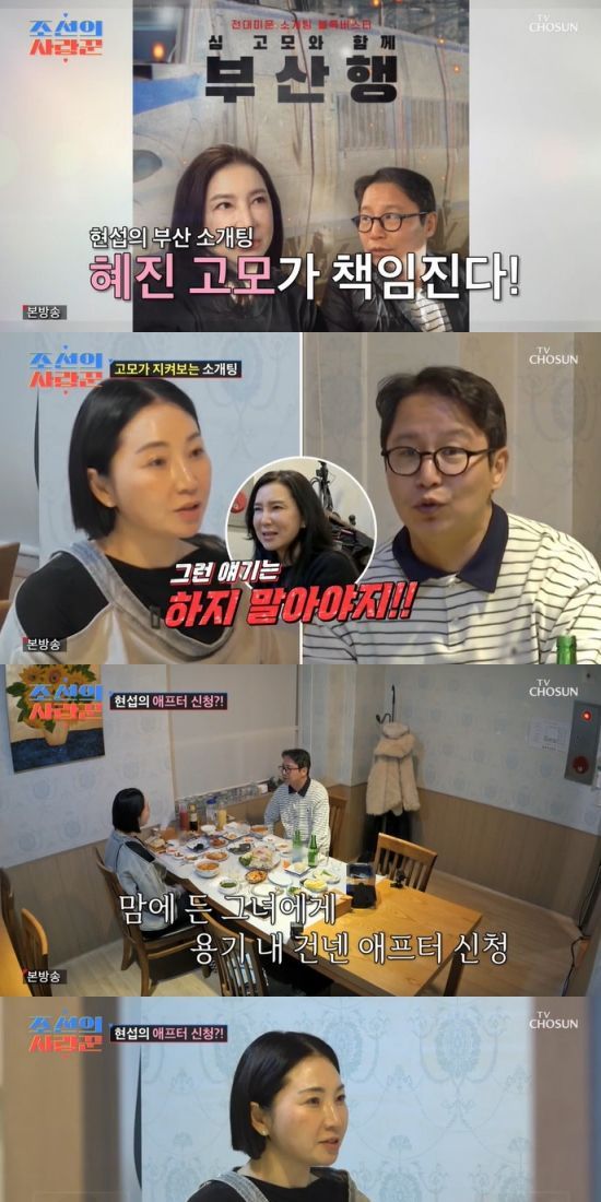 이후 심현섭은 심혜진과 함께 부산으로 떠났다. 소개팅녀는 부산 P호텔에서 근무하는 지배인이었고, 심현섭은 과한 농담과 성대모사를 하는 등 심혜진의 원성을 샀다.