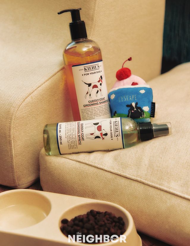 Kiehl’s 커들리-코트 그루밍 샴푸 500ml 4만6000원대, 클렌징 스프리츠 250ml 4만원대. 벤앤제리스와의 협업으로 제작된 레스케이프 한정판 노즈워크 펫 토이와 프리미엄 웰컴 키트.