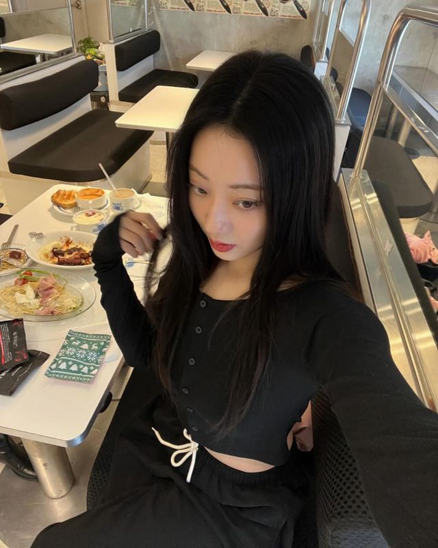 공개된 사진 속 경리는 한 브런치 카페에서 인증샷을 남기고 있다.