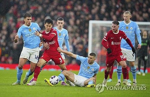 리버풀과 맨체스터 시티가 11일(한국시간) 잉글랜드 리버풀에 있는 안필드에서 2023-2024시즌 프리미어리그 28라운드 맞대결에서 전반 23분 존 스톤스의 선제골과 후반 5분 알렉시스 맥알리스터의 동점 골로 1-1로 비겼다.
