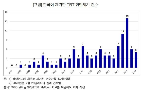 신 부연구위원은 "무역기술장벽의 증가에 따른 부정적 영향을 해결하기 위해 양자·다자적 차원의 직접 무역 협상을 통해 무역기술장벽의 수준을 낮출 필요가 있다"며 "궁극적으로는 우리 수출 산업의 생산성과 시장 경쟁력을 강화해야 한다"고 제언했다.