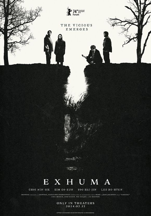 어두운 톤으로 연출된 아트 포스터는 영문 제목인 'EXHUMA'와 "THE VICIOUS EMERGES(험한 것이 나왔다)"라는 카피와 함께 땅 속과 땅 위에 자리한 '험한 것'의 비주얼로 눈길을 사로잡는다.