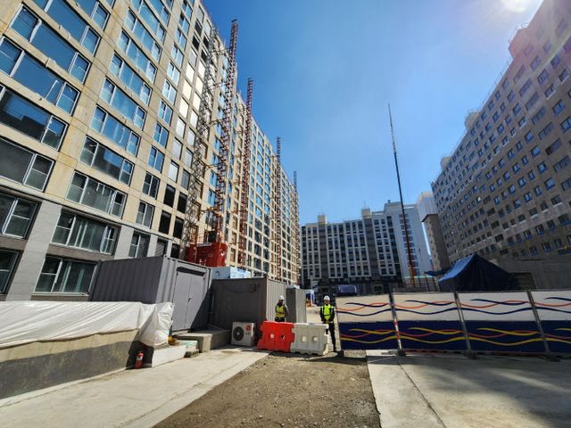 둔촌현대1차 아파트를 리모델링한 더샵 둔촌포레는 현재 공정률 72%로 지난 11일 일반분양을 개시했다. 지하 2층~지상 14층, 전용 84~112㎡, 총 572가구로 구성되며 이 중 74가구는 일반분양 물량이다.