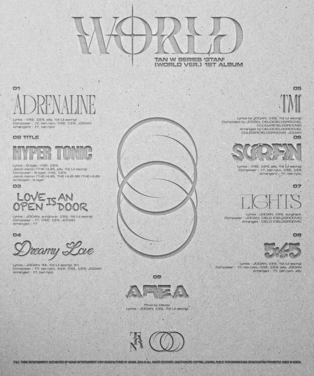 TAN은 지난 12일 공식 SNS를 통해 TAN W SERIES ‘3TAN’(World ver) 1ST ALBUM 트랙리스트를 공개했다.