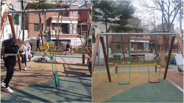 14일 서울 영등포경찰서에 따르면 대림지구대 소속 나용훈 경사, 현진아 경장은 지난 9일 오후 3시 50분 대림2동 어린이공원 탄력순찰 중 끊어진 그네를 이용하여 한 줄에 한 명씩 매달려 옆에서 놀고 있는 어린이에게 피해를 주며 위험하게 놀고 있는 어린이를 발견했다.