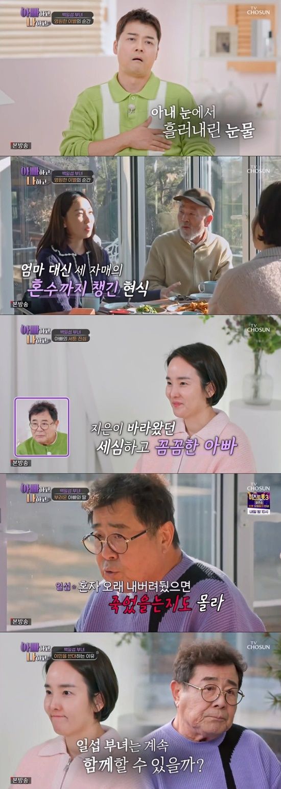 또 임현식은 "농약 치다가 너무 들이마셔서 쓰러진 적이 있다. 중환자실에서 일주일을 입원했다. 주변에 사람이 없었더라면 죽었을지도 모른다"라고 딸과 함께 살게 된 계기를 전했다.
