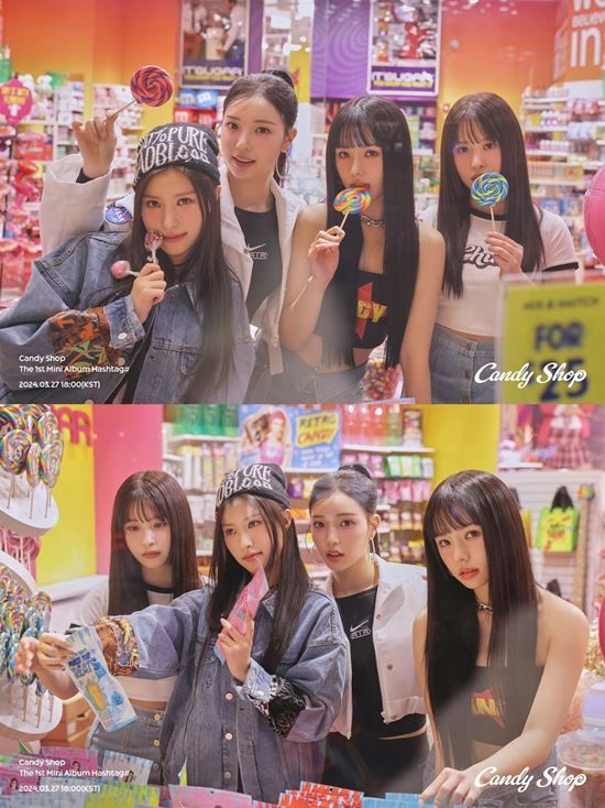 캔디샵(소람, 유이나, 수이, 사랑)은 14일 0시 공식 SNS에 미니 1집 'Hashtag#'(해시태그#)의 캔디샵 버전 단체 및 개인 티저 이미지를 게재했다.