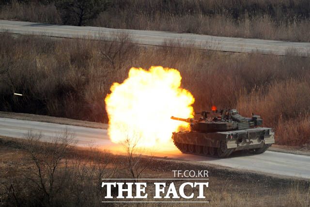 육군 수도기계화보병사단의 K1A2전차가 사격하고 있다. /사진공동취재단