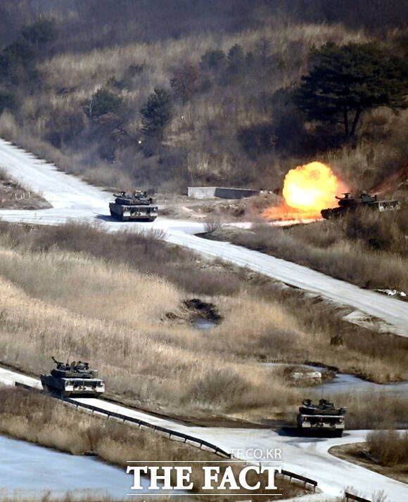 [더팩트ㅣ이새롬 기자] 육군 수도기계화보병사단(수기사)은 지난 8일부터 일주일간 경기도 포천에 위치한 승진훈련장에서 미2사단 및 한미연합사단(한미연합사단)과 연합 통합화력훈련을 실시했다.