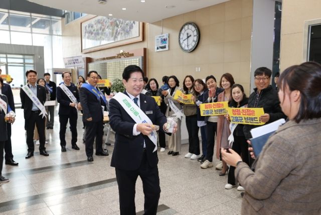 [파이낸셜경제=김영란 기자] 공영민 고흥군수는 14일 친절 생활화와 청렴한 공직문화 전파를 위해 ‘출근길, 공직자와 소통하는 하루’ 행사를 가졌다.
