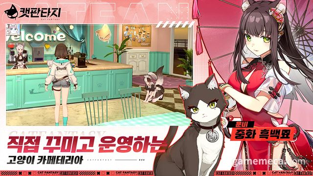 캣 판타지는 ‘고양이 모에화’를 표방하는 수집형 RPG로, 고양이들이 전부 미려한 여성형 캐릭터로 표현된다. 유저는 조사관 신분으로, 변신한 미소녀 고양이 소대를 이끌고 파멸해 가는 세상을 구원한다. 캣 판타지 특징은 출현하는 귀여운 고양이들이 미소녀로 변신한다는 점이다. 중화 흑백묘, 백묘, 랙돌 등 여러 종류의 고양이들이 등장하며, 각각 서로다른 성격과 특색을 지녔다.