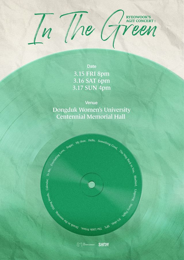 려욱은 오늘부터 17일까지 3일간 서울 성북구 동덕여자대학교 백주년기념관에서 ‘RYEOWOOK’S AGIT CONCERT : In The Green’(려욱스 아지트 콘서트 : 인 더 그린)을 진행한다.