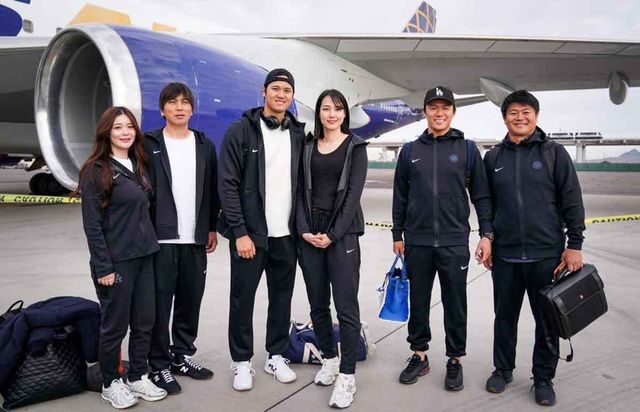 오타니가 한국행 비행기 앞에서 아내 다나카 마미코를 깜짝 공개했다. / LA다저스 인스타그램