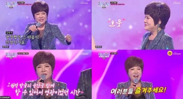 또 김연자는 TOP7과 함께 '아모르파티' 축하 무대를 준비했다. 후배들과 함께 어우러져 신나는 무대를 꾸미는 김연자의 내공이 빛났다.
