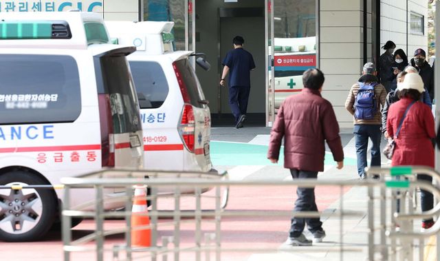 서울 송파구 서울아산병원에서 간호사가 응급센터로 들어서고 있다. / 3월 6일자 뉴스1 사진