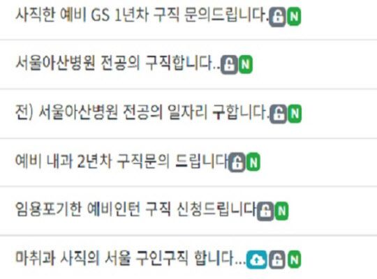 15일 기준 서울시의사회 온라인 구인·구직 게시판에는 총 268개의 구인·구직 글이 게재됐다. ‘사직 정형외과 전공의 구직합니다’ ‘올해 졸업 후, 임용 포기한 예비 인턴 구직 신청합니다’ 등의 내용이다. 앞서 서울시의사회는 사직 전공의에게 새 일자리를 이어주기 위해 지난 6일 구인구직 게시판을 열었다.