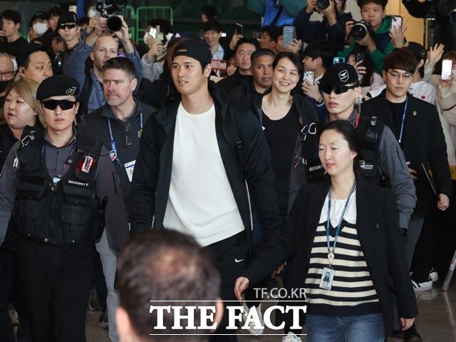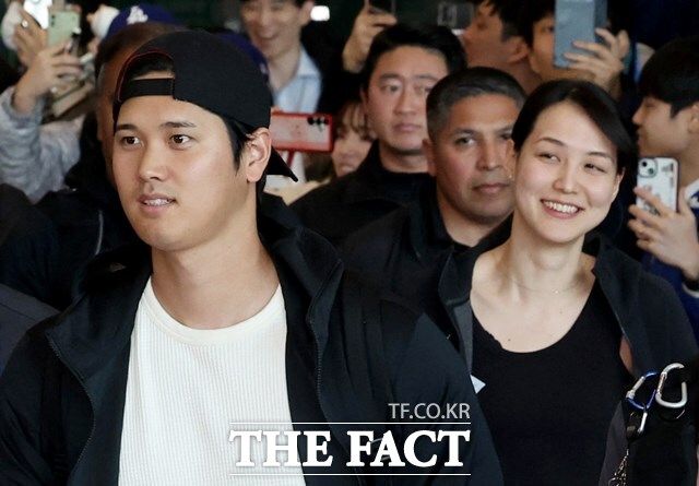 [더팩트 | 박순규 기자] 예상대로 관심이 폭발했다. 미국 프로야구 메이저리그(MLB) 최고의 스타로 주목 받는 ‘6000억 사나이’ 오타니 쇼헤이(29)와 소속팀 로스앤젤레스(LA) 다저스 선수단이 한국 땅을 밟으면서 오는 20일과 21일 서울 고척스카이돔에서 열리는 샌디에이고 파드리스와 2024시즌 메이저리그 개막전 서울시리즈가 본격적으로 달아오르기 시작했다. 특히 오타니는 그동안 노출시키지 않던 신부 다나카 마미코(27)를 서울시리즈에 앞서 깜짝 공개하고 함께 입국하면서 팬들의 이목을 집중시켰다.