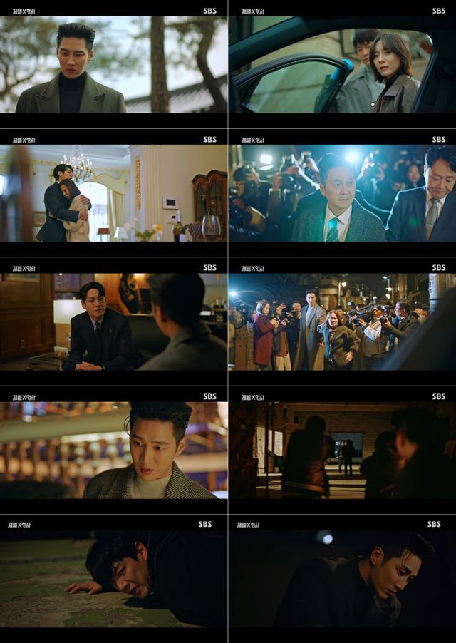 이 가운데 극 말미, 손에 땀을 쥐게 하는 긴장감 속 반전이 폭발했다. 이수와 강현, 준영이 잠복을 이어가던 중 최현배가 모습을 드러냈고, 강현은 최현배의 뒤를 밟아 공범까지 잡자는 계획을 세웠다. 이후 세 사람은 폐건물에서 최현배가 누군가와 접선하는 현장을 기습했다. 강현과 준영이 최현배를 쫓고, 이수가 공범 쪽을 쫓게 된 상황. 최현배를 체포한 강현은 그의 차 트렁크에서 피투성이가 된 여성을 발견하고 경악했다. 더욱이 홀로 공범을 쫓아간 이수가 체포한 사람이 바로 형인 승주로 밝혀지며 극이 종료돼, 시청자들을 충격으로 몰아넣었다. 이에 세상 둘 도 없던 의좋은 이복 형제의 운명은 어떻게 될지, 트렁크 속 납치된 여성은 누구일지 의문이 꼬리에 꼬리를 물며, 예측할 수 없는 전개로 시선을 붙드는 ‘재벌X형사’ 다음 화에 기대감이 고조된다.