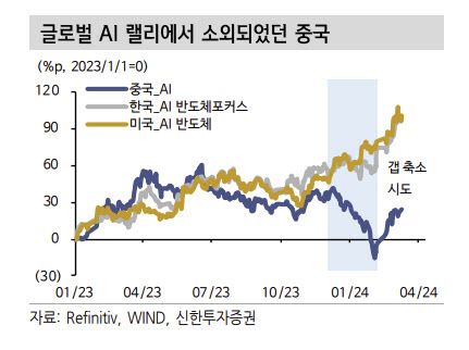이어 “작년 고점까지의 상승 여력(38%)은 유효하다는 판단으로 글로벌 AI 랠리에서 소외된 중국의 갭 메우기에 주목할 필요가 있다”고 밝혔다. 그는 “개별종목 투자가 부담스럽다면 후강퉁 리스트에 편입된 본토 인공지능 상장지수펀드(ETF)로 접근하는 것도 좋은 대안”이라고 제시했다.