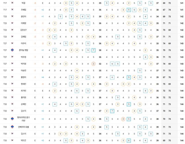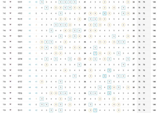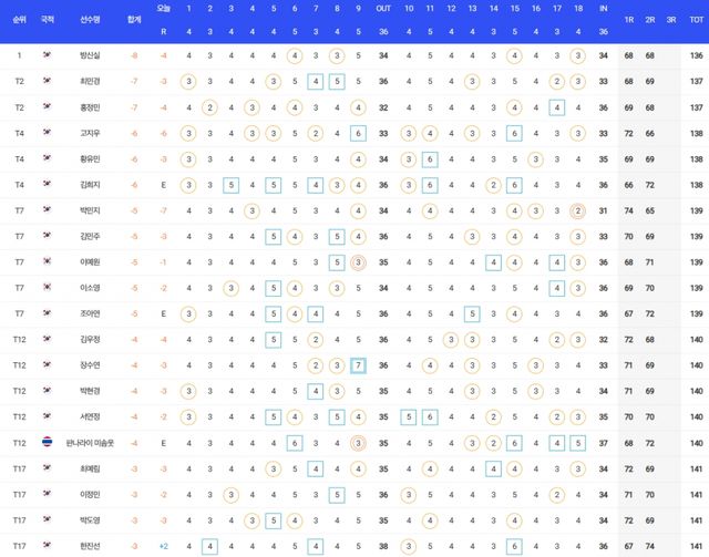 1.방신실 -8, T2.최민경-홍정민 -7, T4.고지우-황유민-김희지 -6, T7.박민지-김민주-이예원-이소영-조아연 -5, T12.김유정-장수연-박현경-서연정 -4, T17.이정민-한진선 -3, T23.이제영-김해림-이주미-박주영-박지영 -1, T33.홍지원-김수지 E, T42.안선주-김재희 +1, T46.최은우-전예성-정윤지-김민별 +2, T53.임희정-이가영 +3, T56.지한솔 +4, 71.장하나+14