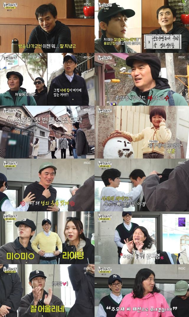 지난 16일 방송된 MBC ‘놀면 뭐하니?’(연출 김진용, 장우성, 왕종석, 소인지/작가 최혜정)는 ‘석훈 씨 네 고향’ 편으로 꾸며졌다. 유재석-하하-주우재-박진주-이이경-이미주는 김석훈과 함께 추억 여행을 하고, 필요 없는 옷들을 기증하고 나눔 하며 뜻깊은 하루를 보냈다. 환경을 생각하는 ‘쓰저씨’ 김석훈의 아이디어에 더해, 중고 의류 수거 전문가로 깜짝 등장한 ‘짜스형’ 임우일의 활약까지 재미를 안기며 시청자들을 사로잡았다.