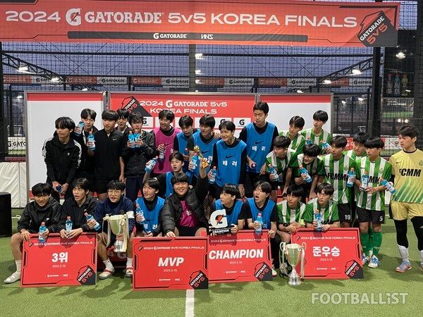 16일 경기 시흥의 HM풋살파크 시흥에서 대한민국 최고의 아마추어 중학생 풋살대회인 ‘2024 게토레이 5v5 코리아 파이널스’가 열렸다. 2022년부터 개최해온 이번 대회에서 우승한 골때리는남자들은 한국을 대표해 오는 상반기 영국 런던에서 열리는 ‘Gatorade 5v5 global finals in London’에 출전할 자격을 얻었다.