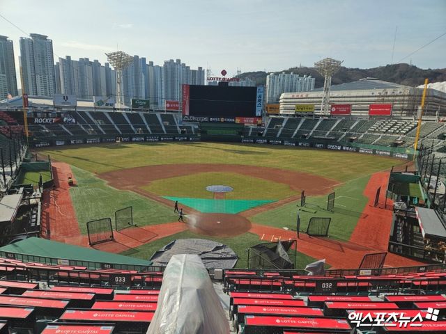 기상청의 예보대로 17일 오전 10시 현재 사직야구장엔 비가 내리지 않고 있다. 홈팀 롯데 선수단이 그라운드에 나와 정상적으로 훈련을 진행 중이다. 전날 12,445명의 관중이 사직야구장을 찾은 가운데, 이날도 1만명 넘는 관중이 야구장에 입장할 것이 확실시된다. 롯데 관계자는 "전날(16일) 기준으로 개방 좌석의 95% 정도가 판매 완료됐다"고 귀띔했다.