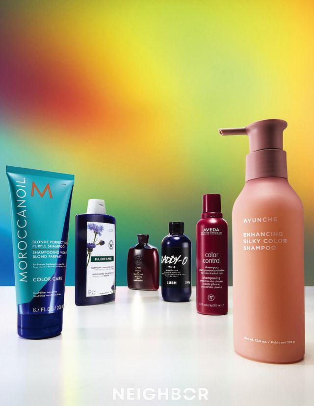 (왼쪽부터) Moroccanoil 바이올렛 색소가 모발에 흡수되어 옐로, 오렌지 톤을 중화한다. 블론드 퍼펙팅 퍼플 샴푸 200ml 2만9000원. Klorane 두피 장벽을 보호하는 약산성 포뮬러의 보색 샴푸. 수레국화 식물성 색소를 풍부하게 담아 자극과 착색 걱정 없이 사용할 수 있다. 센터리 샴푸 400ml 2만6000원. Oribe 염색과 탈색모 전용 샴푸로 사용감이 매우 순하다. 부드러운 세정으로 모발 컬러를 보존한다. 뷰티풀 컬러 샴푸 250ml 7만5000원. Lush 해초 추출물, 해수, 코코넛 오일을 함유해 푸석한 머릿결을 부드럽게 가꾼다. 대디-오 샴푸 250g 1만9000원. Aveda 보태니컬 기술을 통해 최대 8주까지 헤어 컬러 유지를 기대할 수 있으며, 오메가 9와 살구 기름 등 식물성 추출 성분을 함유했다. 컬러 컨트롤 샴푸 200ml 3만6000원. Ayunche 본딩 샴푸로 손상모의 큐티클을 부드럽게 정돈해 찰랑이는 머릿결을 선사한다. 인핸싱 실키 컬러 샴푸 500g 4만6000원.