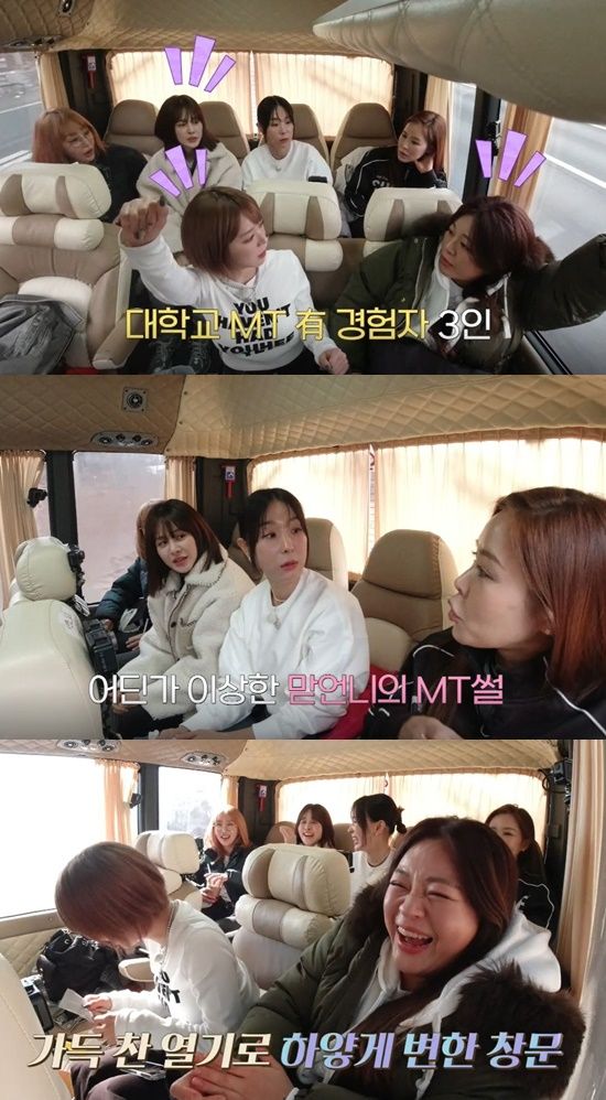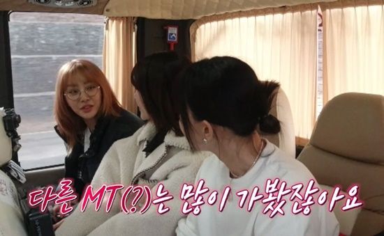 버스가 출발하자 나르샤는 "MT를 가 본 사람이 있느냐"라고 묻고, 이영현과 더불어 아이비, 초아가 손을 들며 경험자의 여유를 뽐낸다.