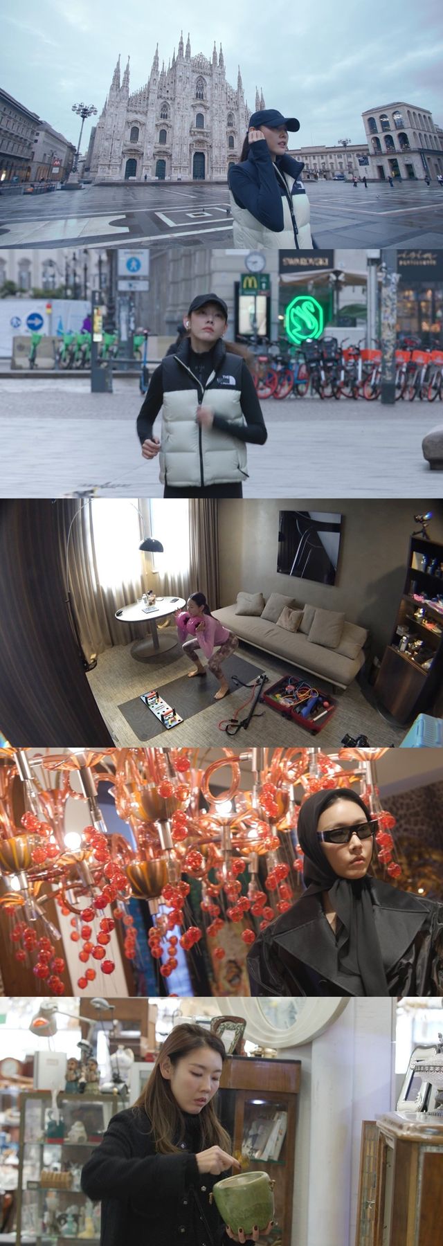 밀라노에 도착한 한혜진은 이른 새벽부터 조깅에 나서 눈길을 끌었다. 밀라노 대성당을 시작으로 황홀한 뷰의 밀라노 랜드마크들을 따라 러닝 하며 자기 관리에 열중한 한혜진의 모습을 지켜보던 母벤져스는 연신 감탄했다. 러닝을 마치고 돌아간 호텔에서도 한혜진의 자기 관리는 멈추지 않았다. 한혜진은 어디서도 본 적 없는 ‘운동 전용 캐리어’를 가져와 휴대용 덤벨, 웨이트 세트, 푸쉬업 바 등을 꺼내 아침 운동을 이어가며 ‘여자 김종국’의 면모를 뽐내 母벤져스를 놀라게 했다.