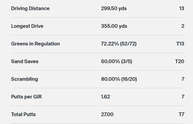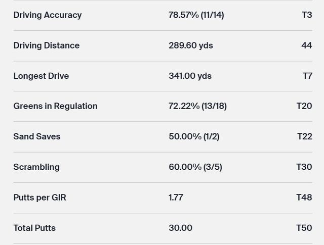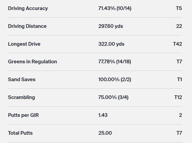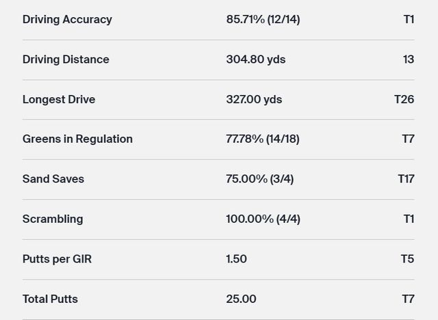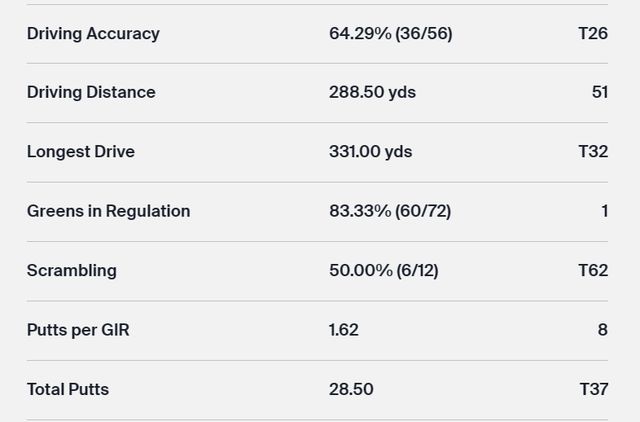 △DRIVING ACCURACY(페어웨이 안착률)=대부분 14개홀에서 페어웨이로 들어간 것을 %로 표시한 것.