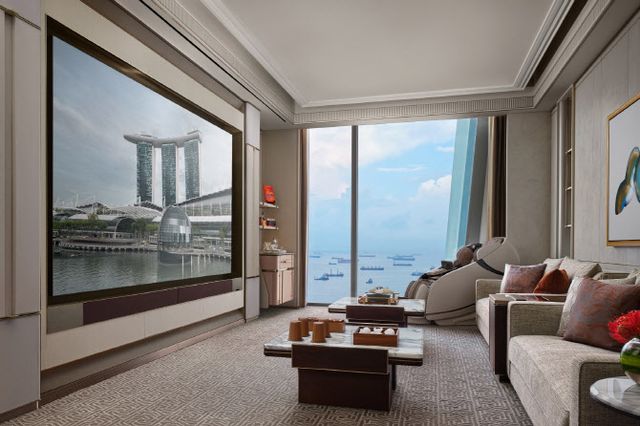 마리나 베이 샌즈의 최상위 객실인 체어맨 스위트(Chairman Suite)에는 삼성전자의 마이크로 LED 기술력을 집약한 초고화질 디스플레이 ‘더 월(The Wall)’을 비치했다. 더 월을 호텔 객실용 스크린으로 설치한 곳은 아태지역 중 마리나 베이 샌즈가 최초다. 더 월은 146형의 크기와 4K(3840×2160) 해상도를 지원하며 베젤이 없는 슬림한 디자인이 특징이다.