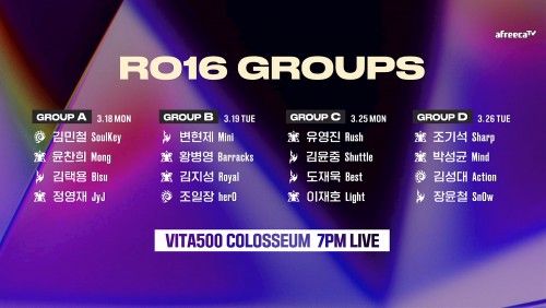 16강 대진은 지난 11일 진행된 조 지명식에서 선수들 간에 치열한 눈치 싸움을 벌인 끝에 완성됐다. 시드권자를 포함해 8명의 테란이 16강에 진출한 이번 시즌은 전 시즌 우승자 김민철의 권한으로 A조의 김성대가 D조의 정영재와 변경되며 모든 조가 밸런스 있게 짜였다.