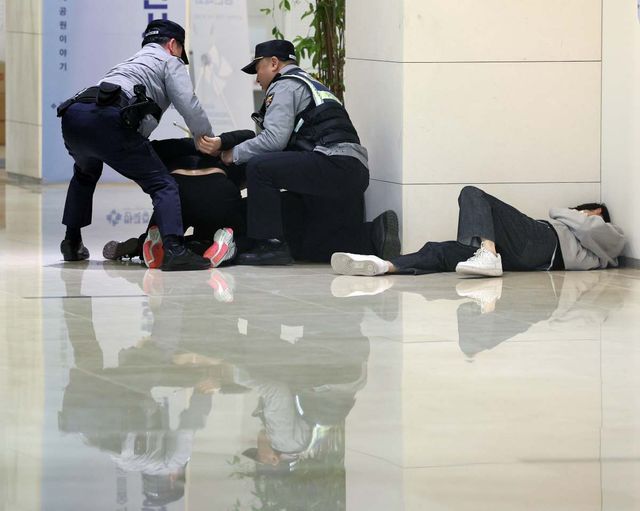 흉기 난동범 제압 훈련 모습. / 뉴스1